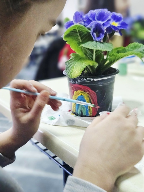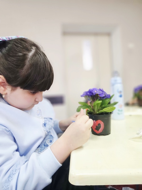 პატარებმა საკუთარი ხელით, დიდი სიყვარულით მოხატეს ქოთნები, შიგ გაზაფხულის მახარობელი იები ჩარგეს და დედებს ფერადი მისალოცი ბარათებით მიულოცეს ეს დღე.