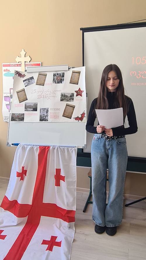 მოსწავლეებმა აღნიშნეს, რომ ამ დღეს საქართველომ დაკარგა დამოუკიდებლობა, რომელიც 1918 წელს მოიპოვა. საბჭოთა რუსეთის არმიის მიერ ქვეყნის ოკუპაციამ დაასრულა საქართველოს პირველი რესპუბლიკის არსებობა.