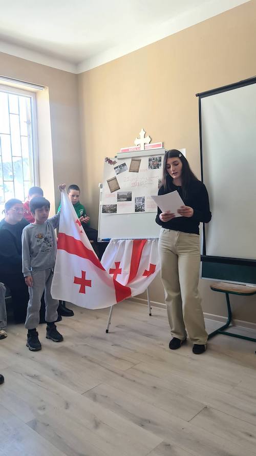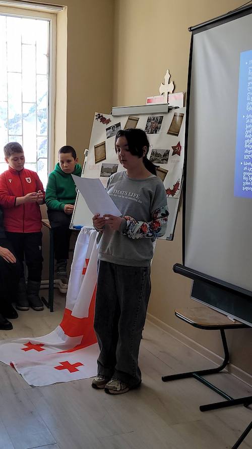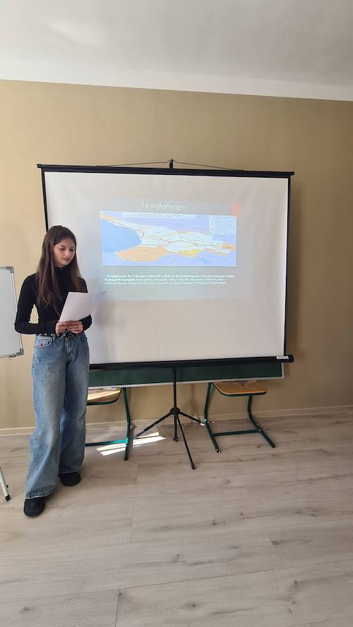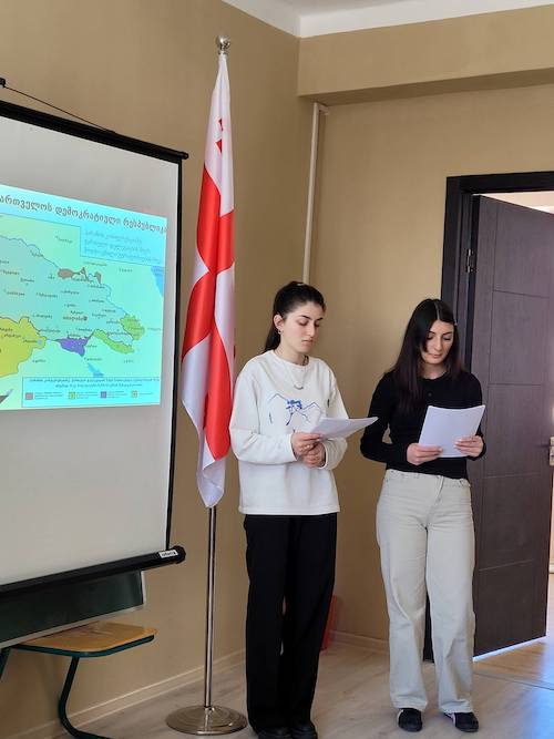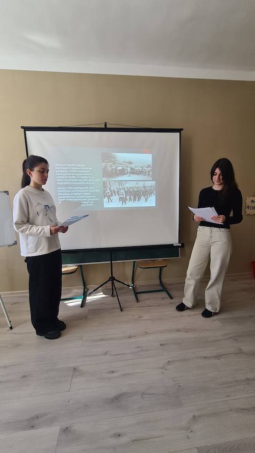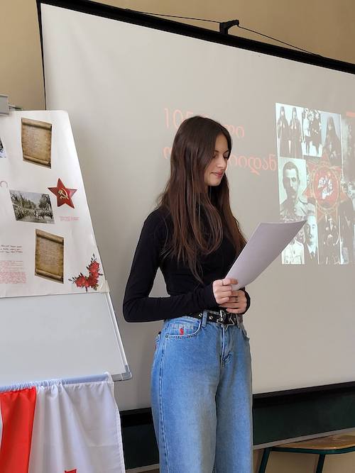 მოსწავლეებმა საქართველოს თავისუფლებისთვის ბრძოლაში დაღუპულ გმირთა ხსოვნას პატივი მიაგეს და საბჭოთა ოკუპაციის მძიმე შედეგებზეც ისაუბრეს.