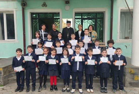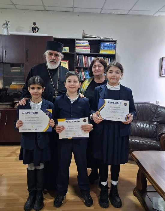 სკოლა-გიმნაზიის დირექტორმა, დეკანოზმა მირიან სამხარაძემ მოსწავლეებს მიღწეული წარმატება მიულოცა
