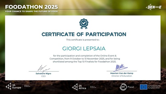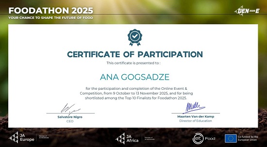 მოსწავლეები აქტიურად შეუერთდნენ საერთაშორისო ღონისძიებას - Foodathon 2025 - your chance to shape the future of the food.