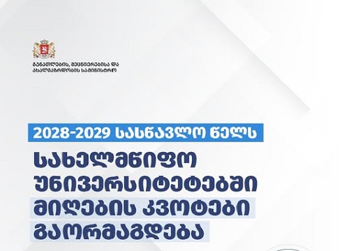 საქართველოს მთავრობის გადაწყვეტილებით, 2028-2029 სასწავლო წელს სახელმწიფო უნივერსიტეტებში სტუდენტთა მიღების კვოტები გაორმაგდება, ვინაიდან მე-11 და მე-12 კლასების მოსწავლეები სკოლებში სწავლას ერთდროულად დაასრულებენ.