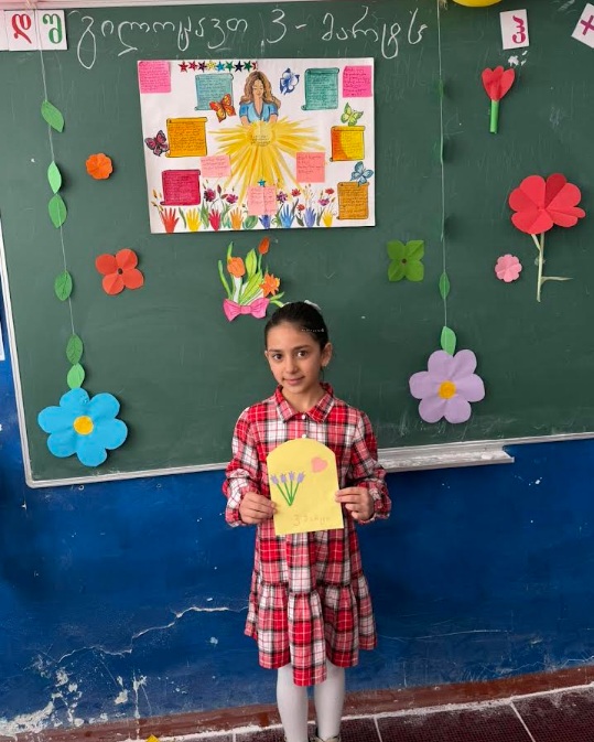 მოსწავლეებმა საყვარელი ქალბატონებისთვის მისალოცი ბარათები დაამზადეს და საინტერესო კედლის გაზეთიც შექმნეს - დედებს თბილი სიტყვები მიუძღვნეს და მათ შრომასა და ამაგს ხოტბა შეასხეს.