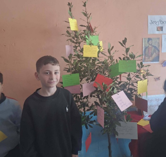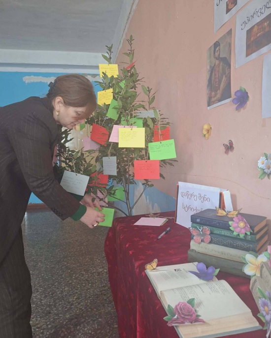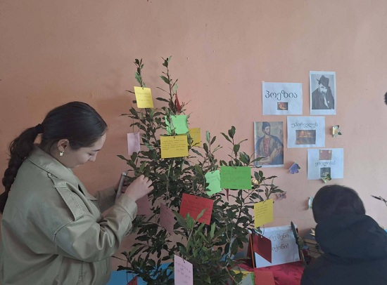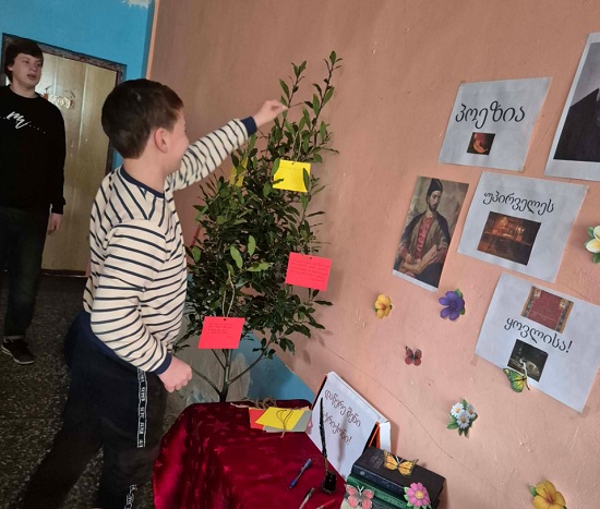 მოსწავლეებსა და მასწავლებლებს დაურიგდათ ფერადი ბარათები. მათ დაწერეს თავიანთი საყვარელი სტრიქონები და ჩამოკიდეს „პოეზიის ხეზე“. დღის ბოლოს ხე მთლიანად „აყვავდა“ ლექსებით.