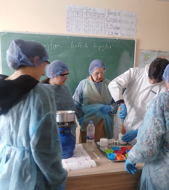 შემდეგ კი თავისივე ხელით დაამზადეს საპონი. პრაქტიკული აქტივობა მოსწავლეებისთვის სასწავლო-შემეცნებითთან ერთად, სახალისო და თავშესაქცევი აღმოჩნდა.