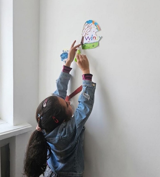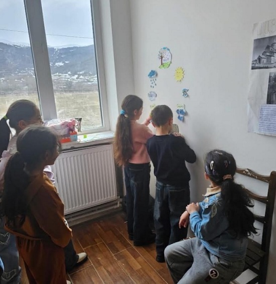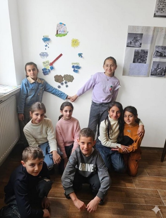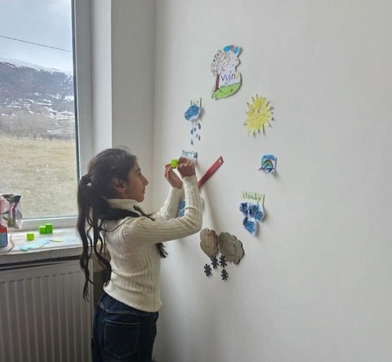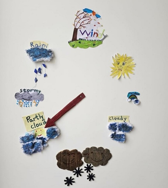 მოსწავლეებმა კლასში შექმნეს „ამინდის საათი“, ისწავლეს ახალი სიტყვები, როგორიცაა მზიანი, მოღრუბლული, წვიმიანი, ქარიანი და სხვა.
