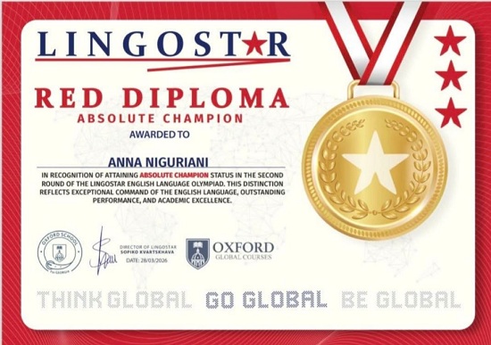 „ინგლისური ენის ონლაინ ოლიმპიადის Lingostar- ლინგოსთარის 2026 წლის გაზაფხულის სეზონის მონაწილეებს, ჭუბერის საჯარო სკოლის მე-8 კლასის მოსწავლე ანა ნიგურიანს და მე-10 კლასის მოსწავლე მარიამ ჩხვიმიანს და მათი ინგლისური ენის პედაგოგებს ვულოცავთ მე-2 ტურში მიღწეულ წარმატებას!“,- აღნიშნავენ სკოლაში.