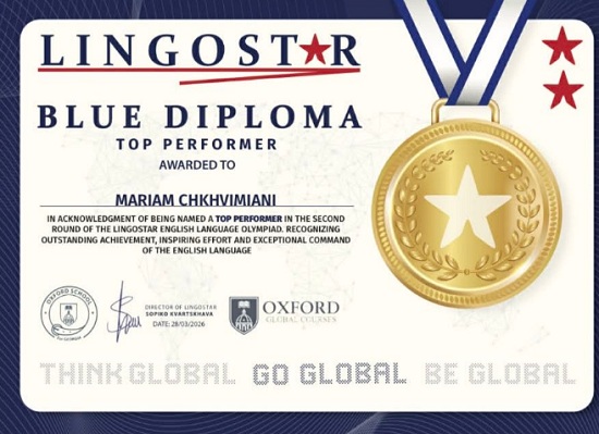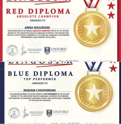 ამჯერად სკოლაში, მე-8 კლასის მოსწავლე ანა ნიგურიანისა და მე-10 კლასელი მარიამ ჩხვიმიანის წარმატებას აღნიშნავენ. მოსწავლეებმა წარმატებით იასპარეზეს ინგლისური ენის ონლაინ ოლიმპიადა - „ლინგოსთარის“ მე-2 ტურში.