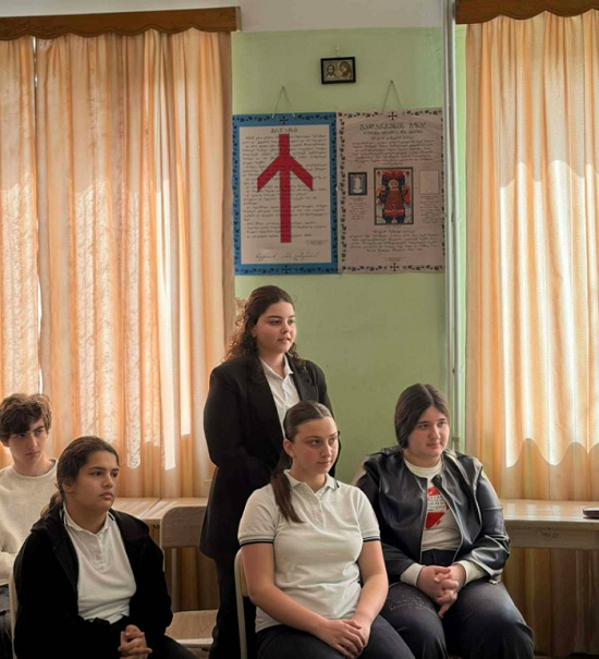ღონისძიება სკოლის დირექტორის - რუბენ ვარდანიანის და ქართული ენისა და ლიტერატურის მასწავლებლის - ლეილა დათაშვილის ხელმძღვანელობით გაიმართა