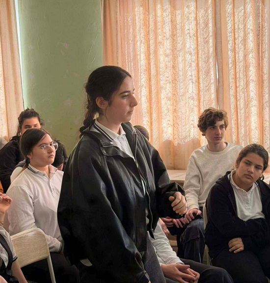 ამ უჩვეულო ფორმატის პირველი სტუმარი გახდა N40 საჯარო სკოლის დირექტორი ნინო ვარდოსანიძე. ის ყურადღებით უსმენდა და შემდეგ გულდასმით პასუხობდა მოსწავლეთა მრავალფეროვან კითხვებს.