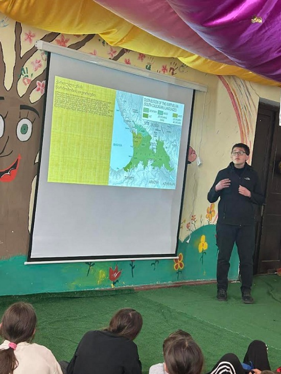 მერვე, მეცხრე, მეათე და მეთერთმეტე კლასის მოსწავლეებმა აუდიტორიის წინაშე ისაუბრეს ქართული ენის გავრცელების არეალზე და ქართული სალიტერატურო ენის განვითარების ისტორიაზე.