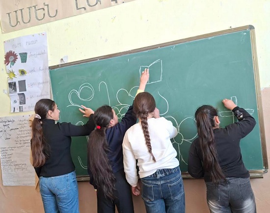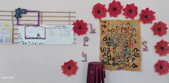 ჩატარდა საინფორმაციო პრეზენტაციები, კალიგრაფიის კონკურსები საფეხურების მიხედვით, სკოლის მოსწავლეების მონაწილეობით და ჩვენი ერთგული ლ. ხმალაძის ხელშეწყობით, მოითელა საოცარი თექის პანო, რომელზეც ასახულია შერწყმულად ქართულ-სომხური ასოები. პანო ორი ერის საუკუნოვანი ისტორიის და მარადიული მეგობრობის სამახსოვროდ გადაეცა სკოლას საჩუქრად“,- გვიყვებიან სკოლაში.