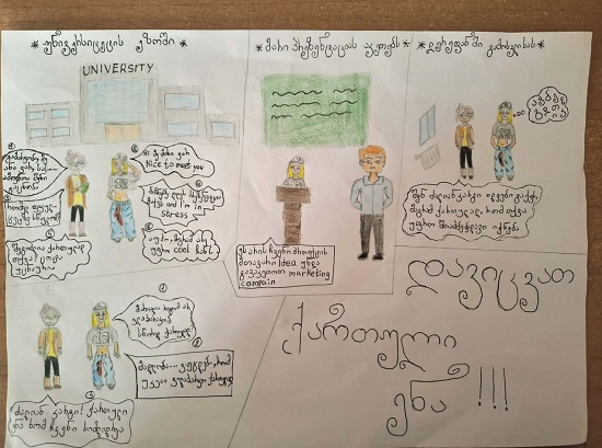 მოსწავლეებმა საინეტრესო თემატური ნამუშევრებით ამ დღის მნიშვნელობას გაუსვეს ხაზი და აღნიშნეს ენის როლი ქართველი ერის თვითმყოფადობის შენარჩუნებაში.
