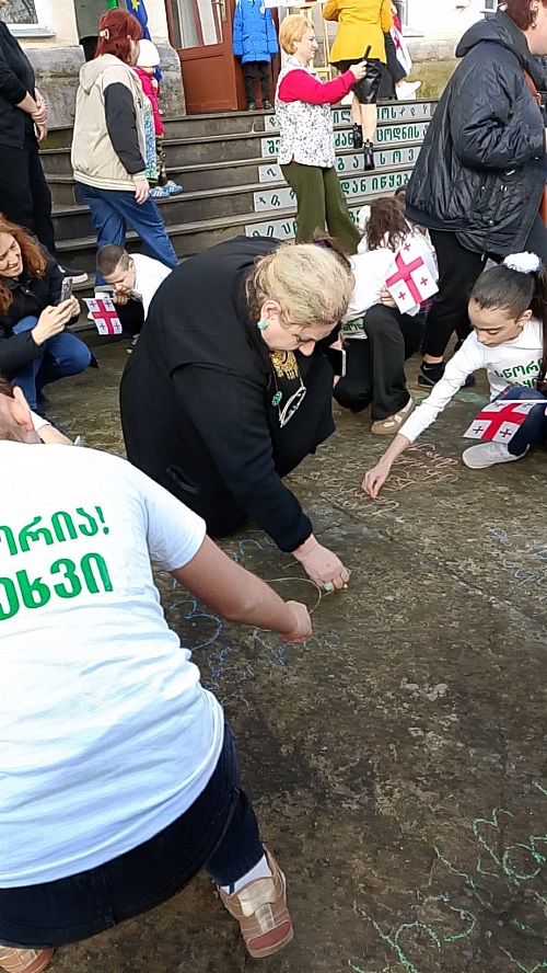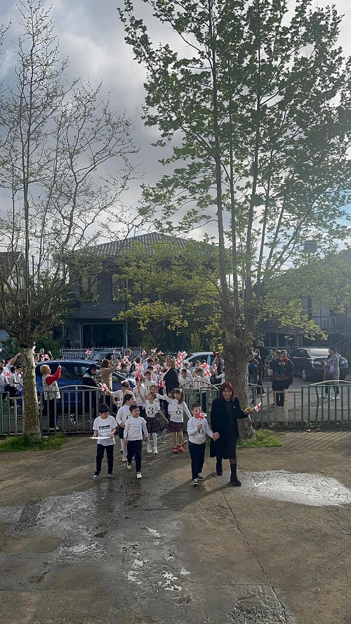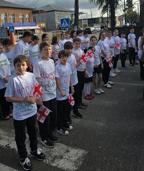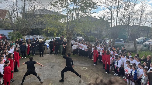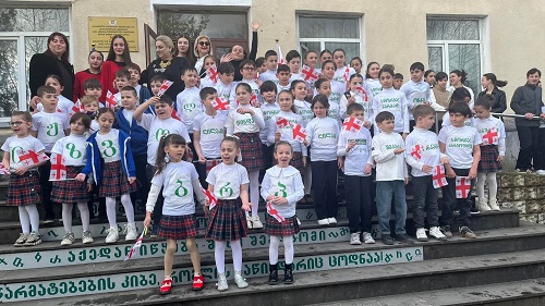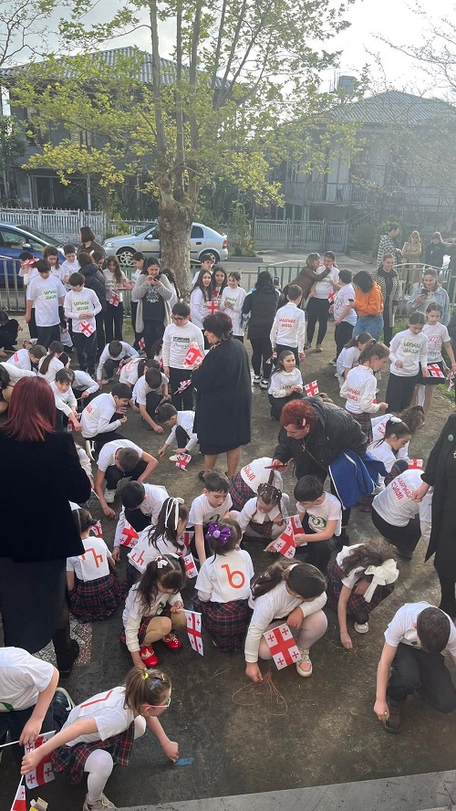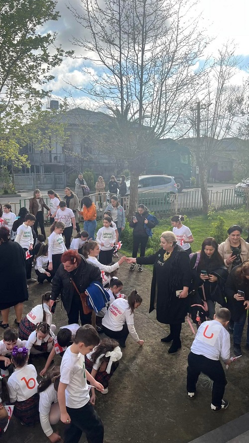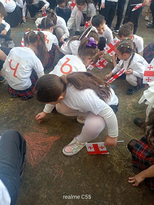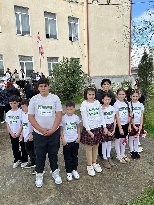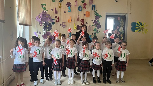 სკოლის ეზო პატარა დღესასწაულად იქცა: დაწყებითი კლასების მოსწავლეები საქართველოს დროშებით ხელში და ანბანის ასოებით გაფორმებული მაისურებით შეიკრიბნენ, ლექსებს ამბობდნენ და ქართული სიტყვისადმი სიყვარულს ბავშვური გულწრფელობით გამოხატავდნენ. მათი ხმა და ღიმილი ეზოს განსაკუთრებულ სიცოცხლეს სძენდა.
