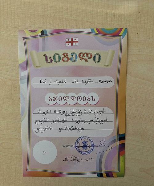 აღსანიშნავია, რომ დედაენის დღისადმი მიძღვნილ კალიგრაფიის კონკურსში გაიმარჯვა თბილისის N28 საჯარო სკოლის მე-7 კლასის მოსწავლე ბარბარე ბადრიაშვილმა.