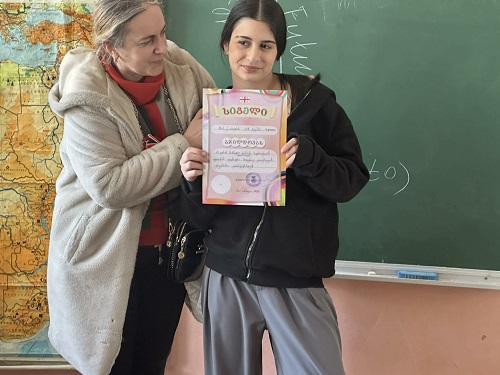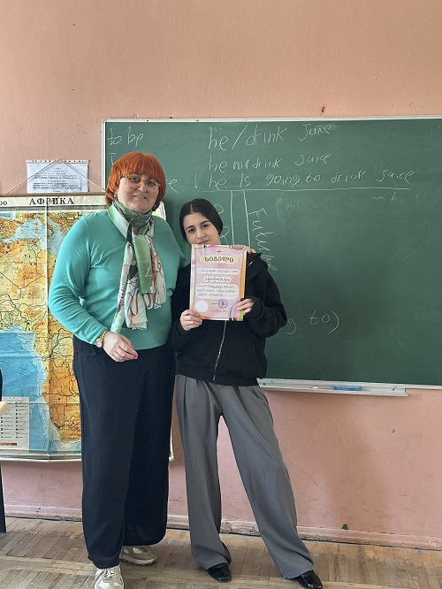 გამარჯვებულს სკოლის დირექტორმა - ქეთევან დავლიანიძემ სერტიფიკატი გადასცა.