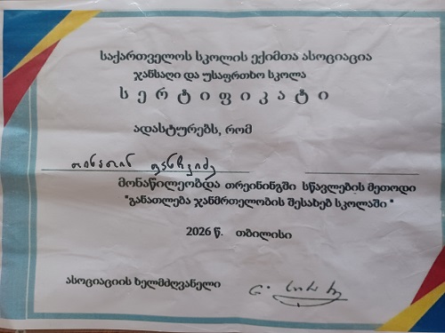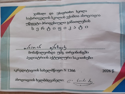 ახლახან, თინათინ ფანჩვიძეს, სკოლის ექიმთა ასოციაციისგან გადაეცა სერტიფიკატები უწყვეტი პროფესიული განათლების ტრენინგებში მონაწილეობისათვის. მან გაიარა ტრენინგები შემდეგი მიმართულებით - „განათლება ჯანმრთელობის შესახებ სკოლაში" და „პედიატრიის აქტუალური საკითხების შესახებ“.