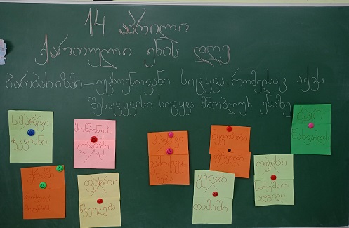მოსწავლეებმა ბარბარიზმების წინააღმდეგ გაილაშქრეს და ქართული შესატყვისებით ჩაანაცვლეს. აღნიშნეს, რომ ენა არ უნდა დავაბინძუროთ და სხვებსაც ენის სიწმინდის დაცვისკენ მოუწოდეს.