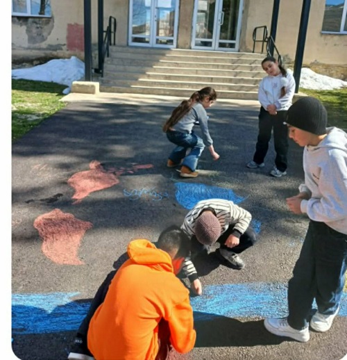 ბილინგვური სწავლების მასწავლებლის, ასია ჯორკნციანის ხელმძღვანელობით, დაწყებითი კლასის მოსწავლეებმა სკოლის ეზო „მსოფლიო რუკად“ აქციეს. მათ ასფალტზე ცარცით კონტინენტები დახატეს, რითაც სიმბოლურად გამოხატეს ზრუნვა მთელ მსოფლიოზე.