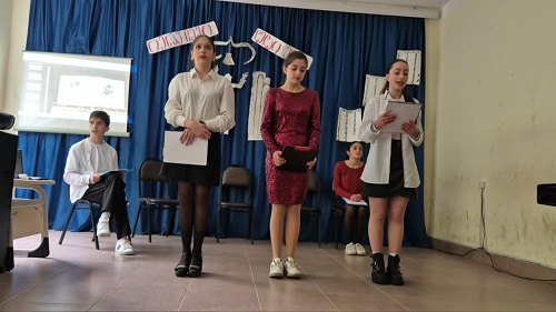 დედაენის დღისადმი მიძღვნილ კვირეულის ფარგლებში ამჯერად, მარიკა მასწავლებელმა და მე-9 კლასის მოსწავლეებმა წარმოადგინეს ღონისძიება სახელწოდებით - „სიტყვაკაზმული ენა ქართული“.