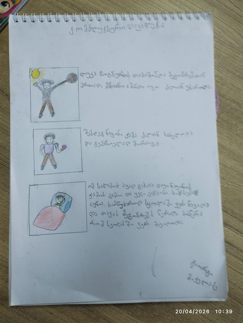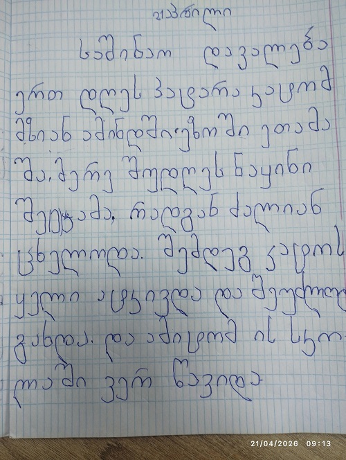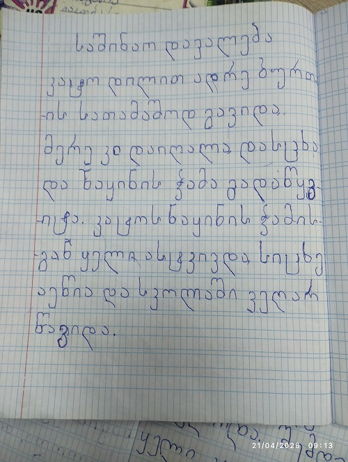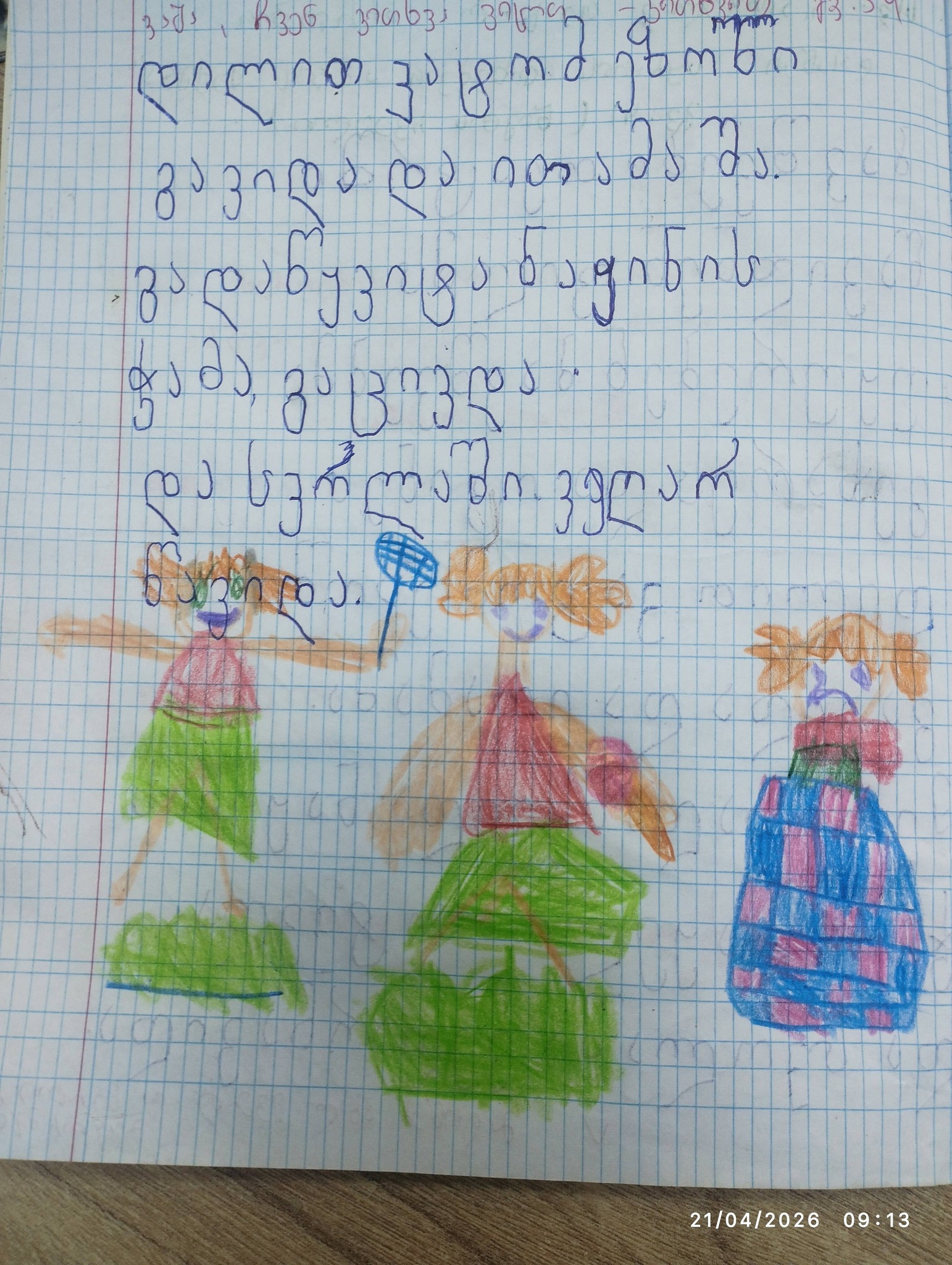 გულმოდგინე ხელით დაწერილი ეს პატარა ამბები კი საუკეთესო დასტურია იმისა, რომ გორელოვკის N3 საჯარო სკოლაში იზრდება თაობა, რომლისთვისაც წიგნიერება და შემოქმედებითი თავისუფლება უმთავრესი ღირებულებაა.