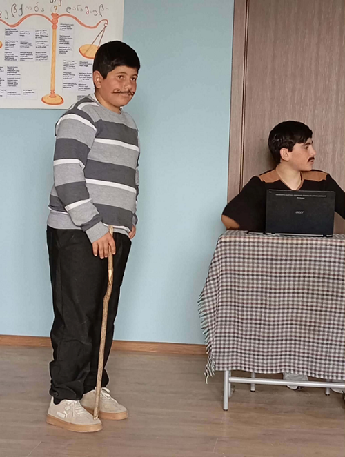 გაკვეთილის ყველაზე შთამბეჭდავი ნაწილი კი მე-7 კლასის მოსწავლეების მიერ წარმოდგენილი პიესა იყო: მათ მოთხრობის გათანამედროვებული ვერსია- „ციფრული თავადობა ანუ სქროლვაა- ადამიანი?!“ დადგეს.