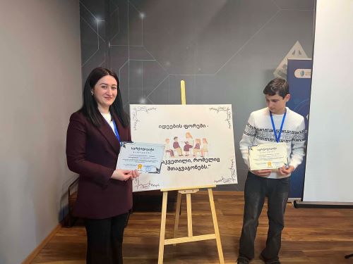 ფორუმზე უშაფათის სკოლა მათემატიკის მასწავლებელმა ილონა მარღიამ და მოსწავლემ - გიგი კორშიამ წარადგინეს. მათ დამსწრე საზოგადოებას გააცნეს პროექტი - „ჩვენი სკოლის მაკეტი“, რომელმაც დიდი მოწონება დაიმსახურა. რატომ? ამ კითხვას მარტივი პასუხი აქვს - პრაქტიკული გამოყენება.