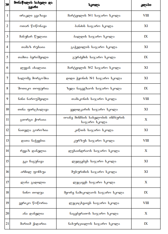 გთავაზობთ, სკოლების ჩამონათვალს, რომლებიც www.etaloni.ge-ს ხელმომწერები არიან. სულ ასეთი 21 სკოლაა: