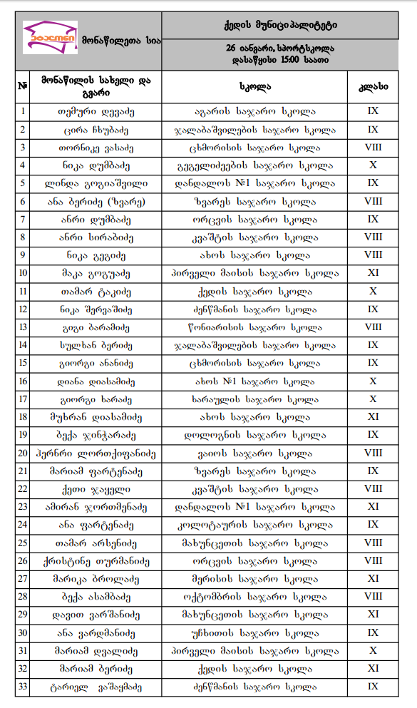 გთავაზობთ, ''ეტალონში'' მონაწილე მოსწავლეების სიას.