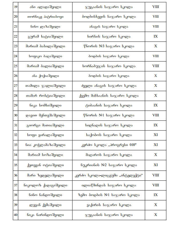 გთავაზობთ, ''ეტალონში'' მონაწილე მოსწავლეების სიას.