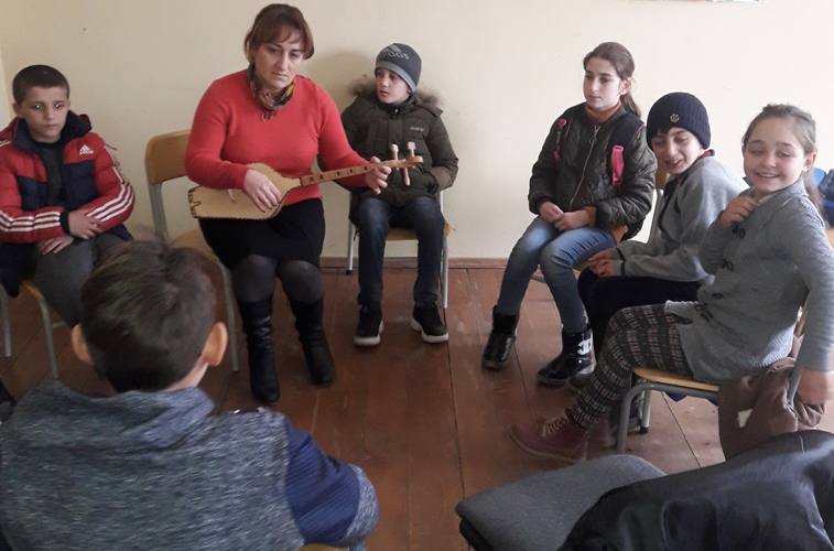 წრეში გაწევრიანებული მოსწავლეები ფანდურზე დაკვრას და სიმღერას შეისწავლიან.