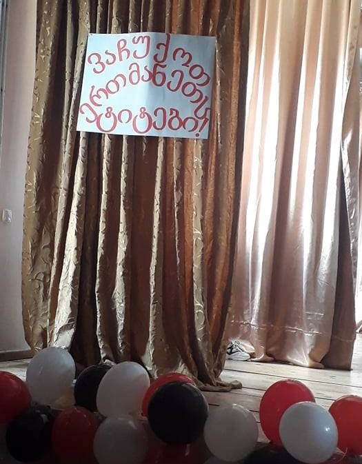 ღონისძიებაში მე-7 კლასის მოსწავლეები მონაწილეობდნენ (ხელ-ლი: რუსუდან ხონელიძე და ელისო უშვერიძე).
