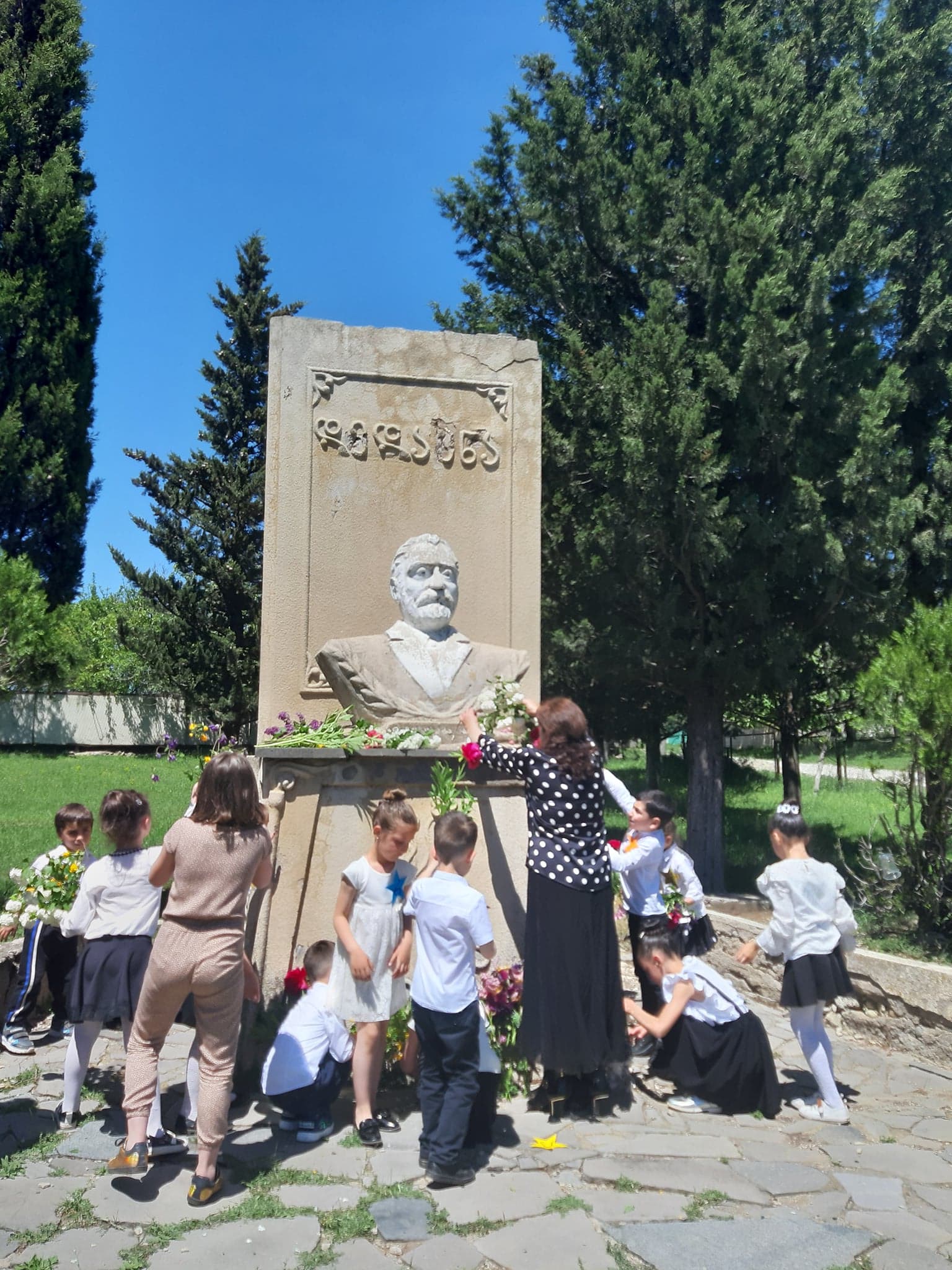 ზეიმის დასასრულს პირველკლასელებმა სკოლის ეზოში იაკობ გოგებაშვილის ძეგლი ყვავილებით შეამკეს.