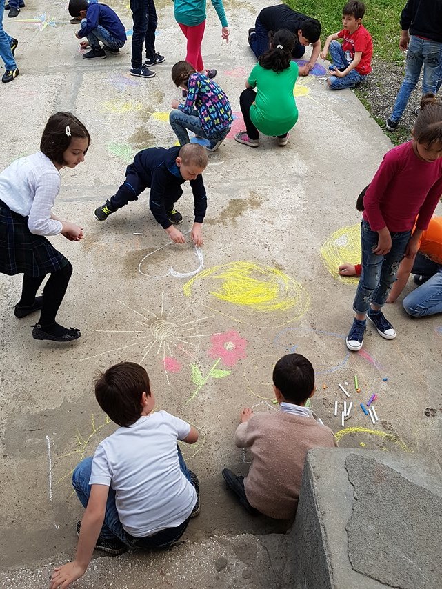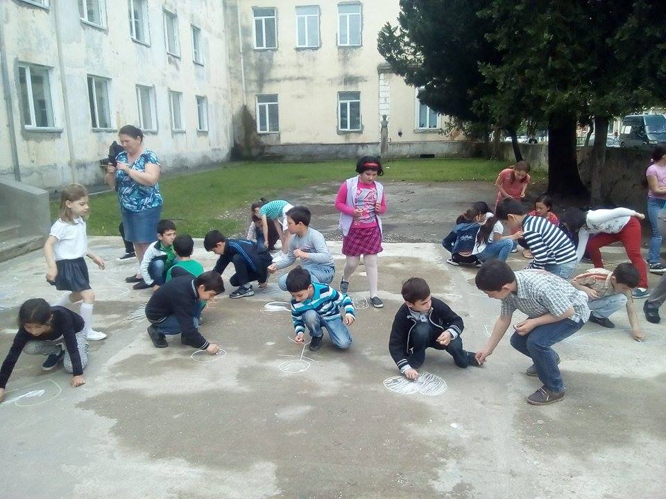 საბავშვო ღონისძიებების ფარგლებში პირველი სკოლის მოსწავლეებმა ფერადი ცარცებით სკოლის მოედნის ასფალტი მშვიდობის თემაზე შესრულებული ნახატებით მოხატეს. ნამუშევრების შესრულების შემდეგ კი ბავშვებმა სიმბოლურად ცაში საჰაერო ბუშტები გააფრინეს.