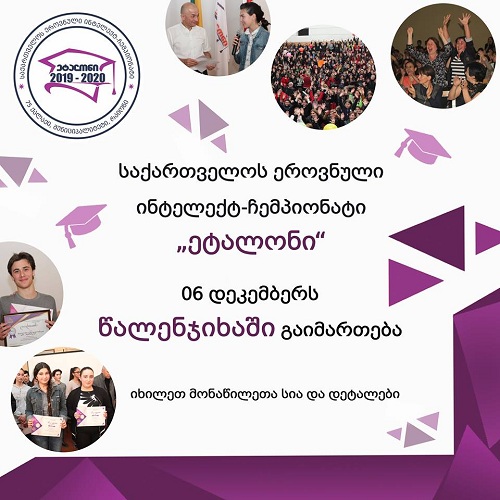 საქართველოს ეროვნული ინტელექტ-ჩემპიონატ „ეტალონის“ II ეტაპის ღონისძიება 6 დეკემბერს, წალენჯიხის კინოთეატრში გაიმართება. მონაწილეები და მათი გულშემატკივრები ღონისძიებაზე 13:30 საათზე უნდა მობრძანდნენ.