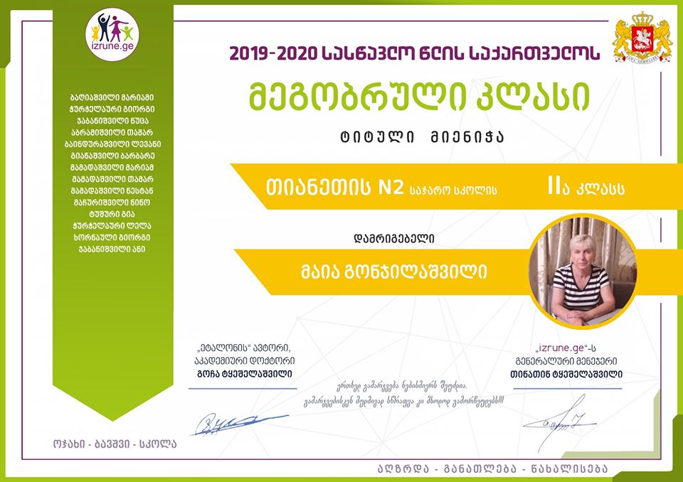 გაიცანით, izrune.ge-ს „მეგობრული კლასის“ ტიტულის ღირსეული მფლობელები დაბა თიანეთის N2 საჯარო სკოლიდან