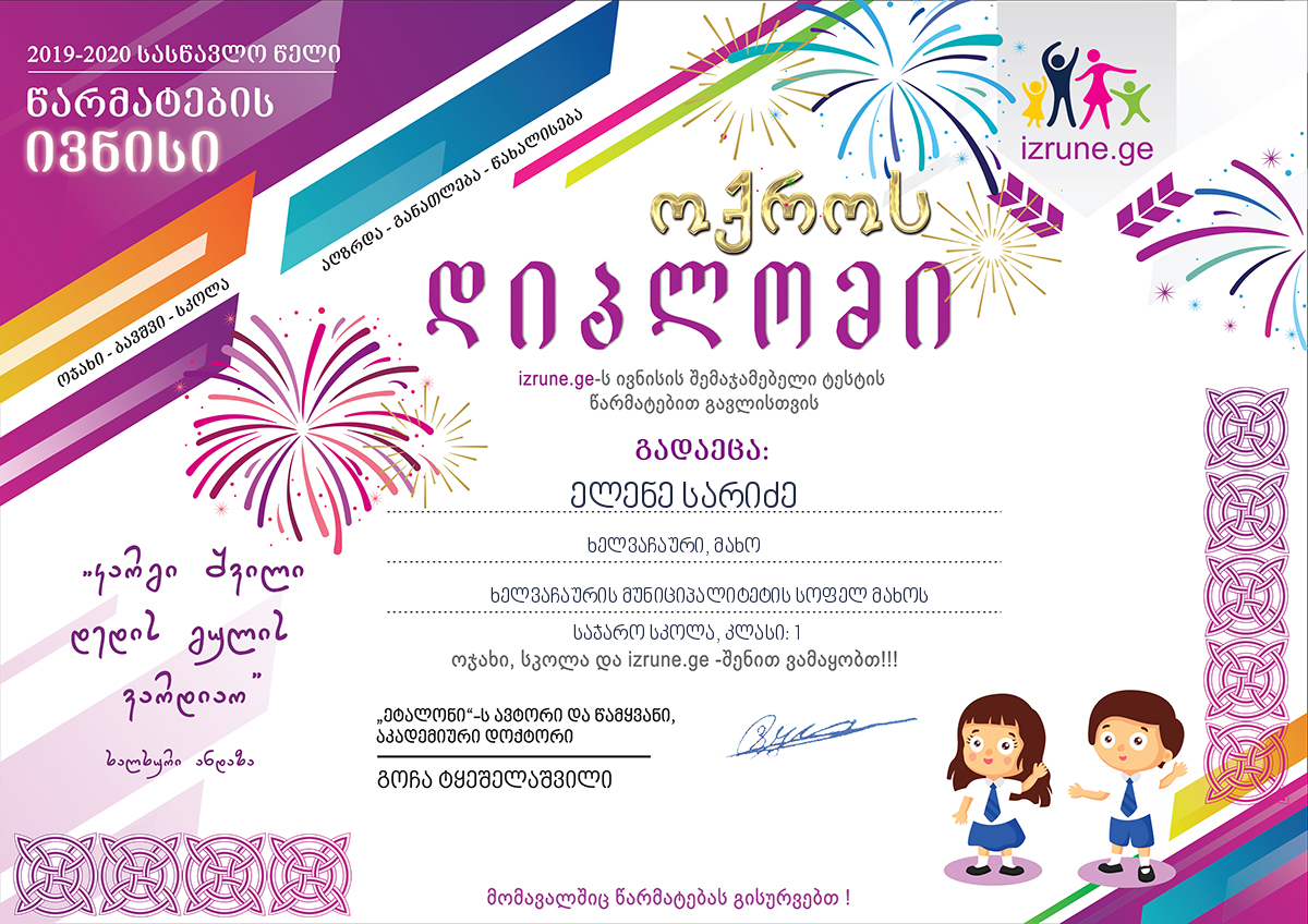 მახოს საჯარო სკოლის 11-მა მოსწავლემ izrune.ge-ს ოქროს დიპლომი მოიპოვა