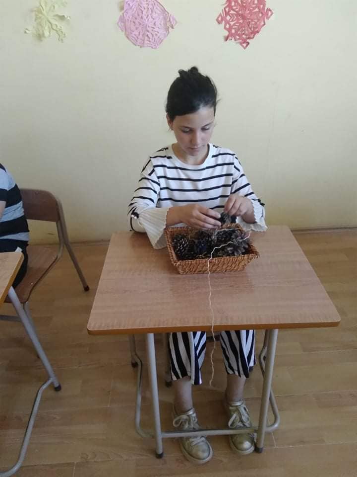 მოსწავლეებმა ჯერ ბუნებაში ააგროვეს გირჩები და ფერადი ფოთლები, შემდეგ კი კლასში ორიგინალური ნივთები დაამზადეს.