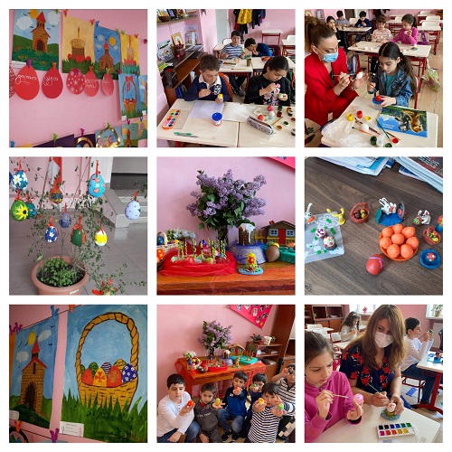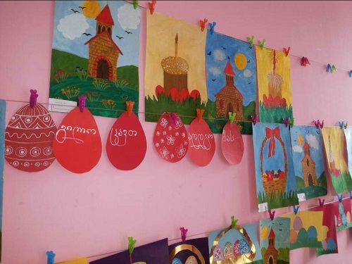ბავშვებმა აღდგომის დღესასწაულს ლამაზი ნახატები მიუძღვნეს, ასევე გააფერადეს კვერცხები და საკუთარი ნამუშევრების გამოფენა მოაწყეს.