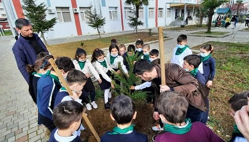 ბათუმის N18 საჯარო სკოლის მიმდებარე ტერიტორიაზე მოსწავლეებმა წიწვოვანი მცენარეები დარგეს