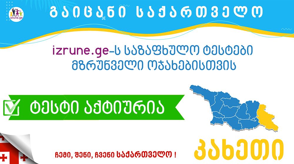 ასევე, ბევრმა მოსწავლემ გაიარა izrune.ge-ის პირველი საზაფხულო ტესტი გაიცანი საქართველოს ფარგლებში (კუთხე კახეთი), რომელიც მოიცავს საინტერესო ინფორმაციას საქართველოს მუნიციპალიტეტების, რეგიონების და მათი კულტურული ღირშესანიშნაობების, გეოგრაფიული უნიკალური თავისებურებებისა თუ საინტერესო ისტორიული ფაქტების შესახებ.