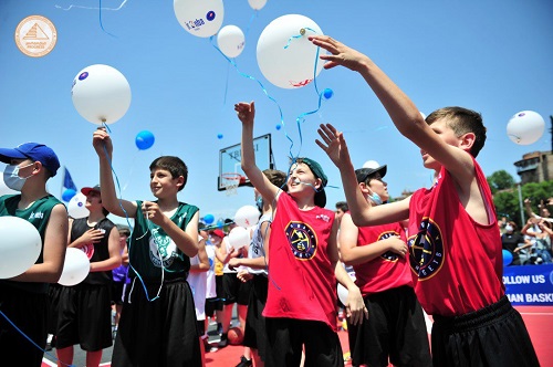 ლეგენდარულმა სპორტსმენებმა პატარა კალათბურთელებს საჩუქრად NBA-ში მოასპარეზე გუნდების სახელობის მაისურები გადასცეს.