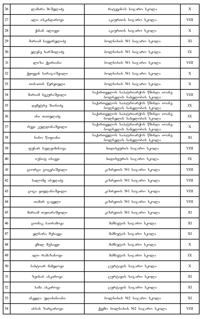 გთავაზობთ „ეტალონში“ მონაწილე მოსწავლეთა სიას.
