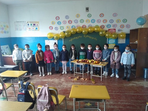 კლასში თვალსაჩინო ადგილს შემოდგომის ნობათიც იყო დალაგებული.