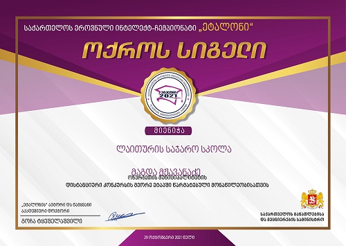 დაბა ლაითურის საჯარო სკოლის 5 მოსწავლე ინტელექტ-ჩემპიონატ „ეტალონში“ წარმატებული მონაწილეობისათვის დაჯილდოვდა