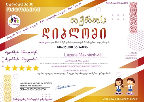 თელეთის საჯარო სკოლის მოსწავლე ლაზარე მახნიაშვილმა izrune.ge-ს ოქროს დიპლომი მოიპოვა