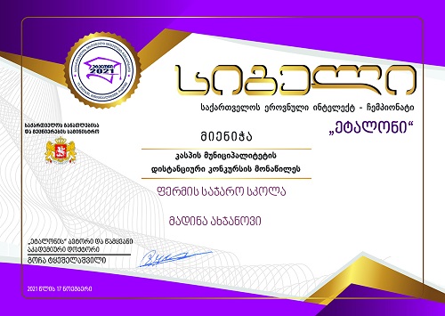 კასპის მუნიციპალიტეტის დისტანციური კონკურსის მონაწილეს „ეტალონის“ სპეციალური ონლაინ სიგელი გადაეცა.
