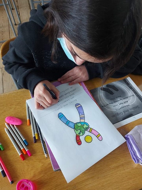 სკოლის მე-5, მე-6 და მე-7 კლასების მოსწავლეებმა ქართულ და ინგლისურ ენაზე დაუნის სინდრომის შესახებ ცნობიერების ამაღლების მიზნით პლაკატები დაამზადეს.