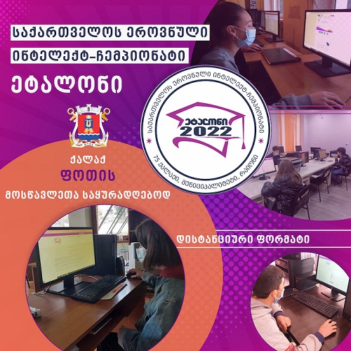 ქალაქ ფოთის სკოლების მოსწავლეებისთვის ტესტირების სპეციალური პორტალი ტესტის გავლისათვის ხელმისაწვდომი 9 ივნისს 10:00 საათიდან 16:00 საათამდე იქნება. ინტელექტ-ჩემპიონატში მონაწილე ყველა ფოთელი მოსწავლე „ეტალონისგან“ სპეციალური სახელობითი ონლაინ სიგელით დაჯილდოვდება.