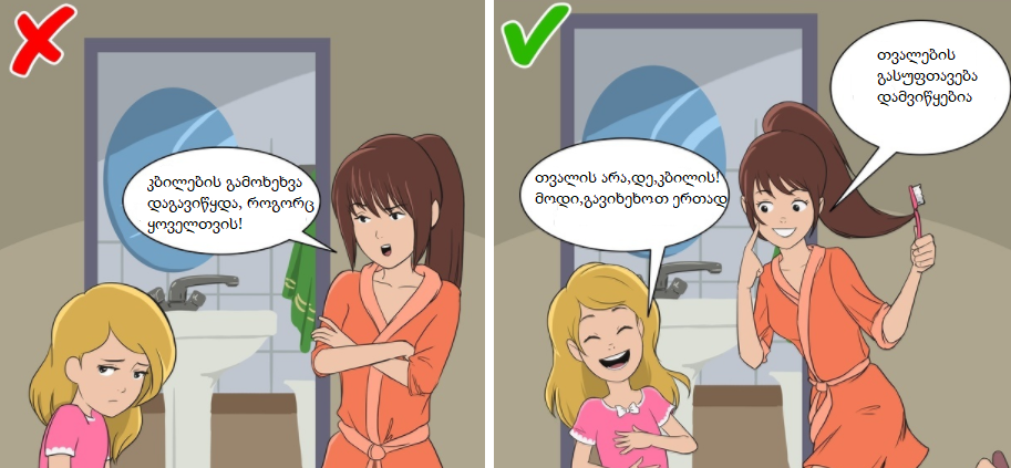 Etaloni.ge გთავაზობთ 6 ჯადოსნურ ფრაზას, რომლებიც,ფსიქოლოგთა რეკომენდაციით, ჭირვეული ბავშვების დაყოლიებაში დაგეხმარებათ და შვილებთან ურთერთობას გაგიუმჯობესებთ: